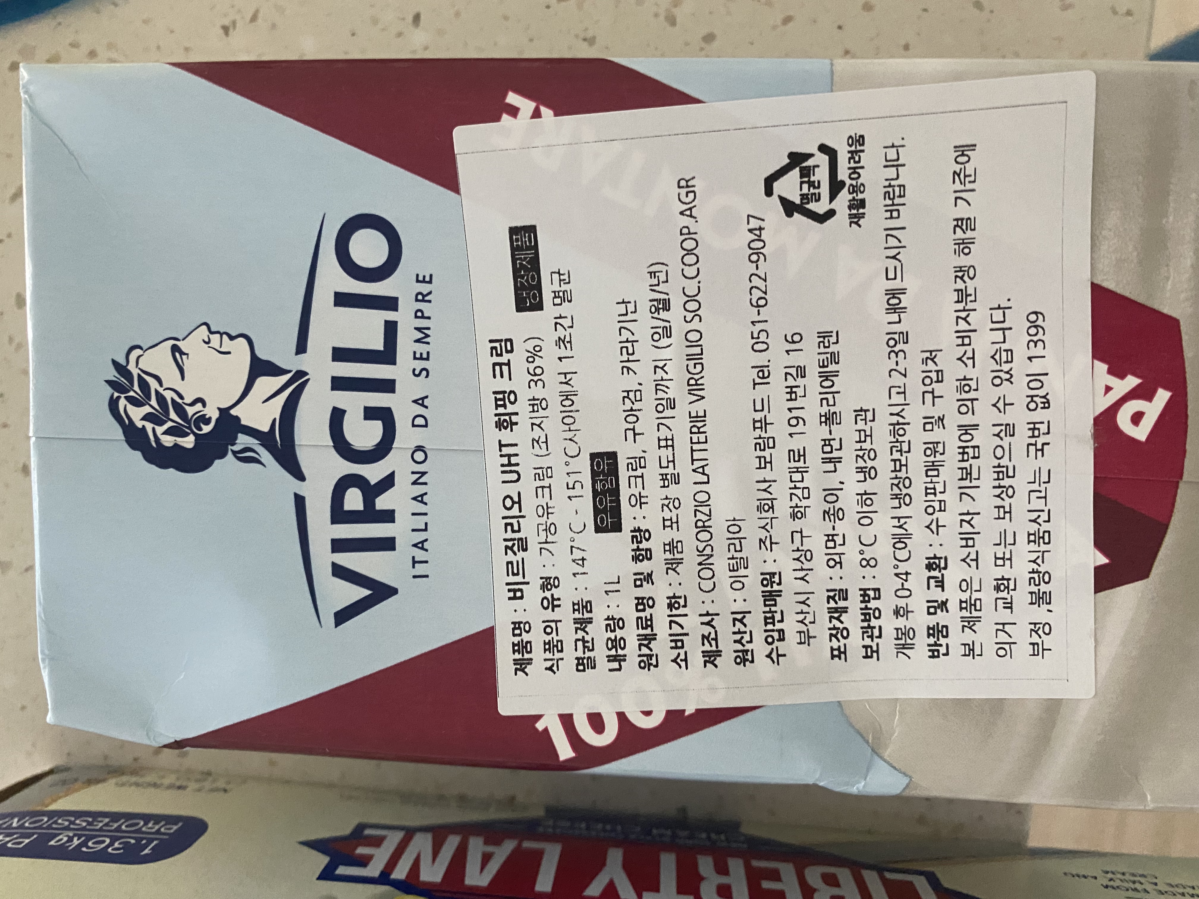 비르질리오 휘핑크림 1L 동물성 생크림 동물복지 무항생제 무호르몬제 (임박26년5월25일)