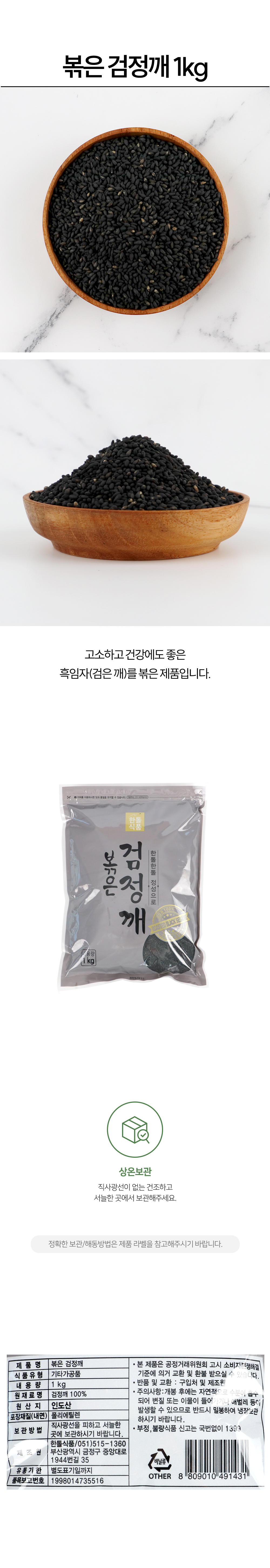 이미지 확대보기한톨 볶은 검정깨 1kg 흑임자