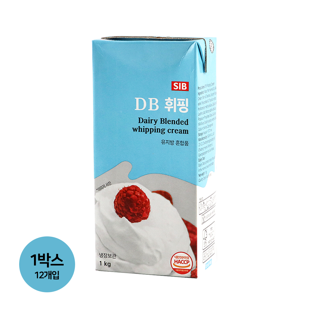 이미지 확대보기(1박스) 선인 DB휘핑크림 1L 12개 무가당 컴파운드 동물성 식물성 생크림