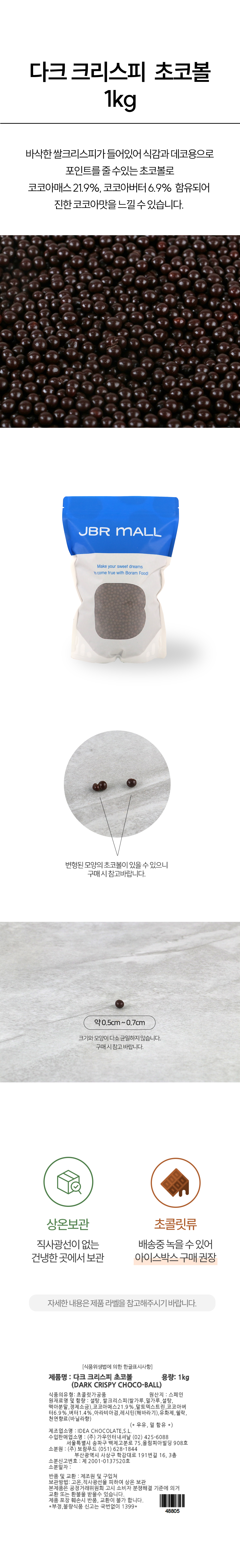 이미지 확대보기(소분) 다크 크리스피 초코볼 1kg 28% 데코용 초콜릿 크런치