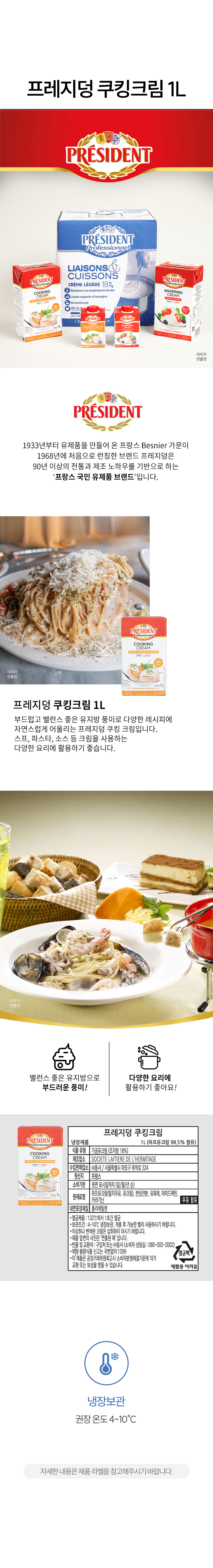 | 제품명 | 프레지덩 쿠킹크림 (하프유크림 98.5% 함유) |