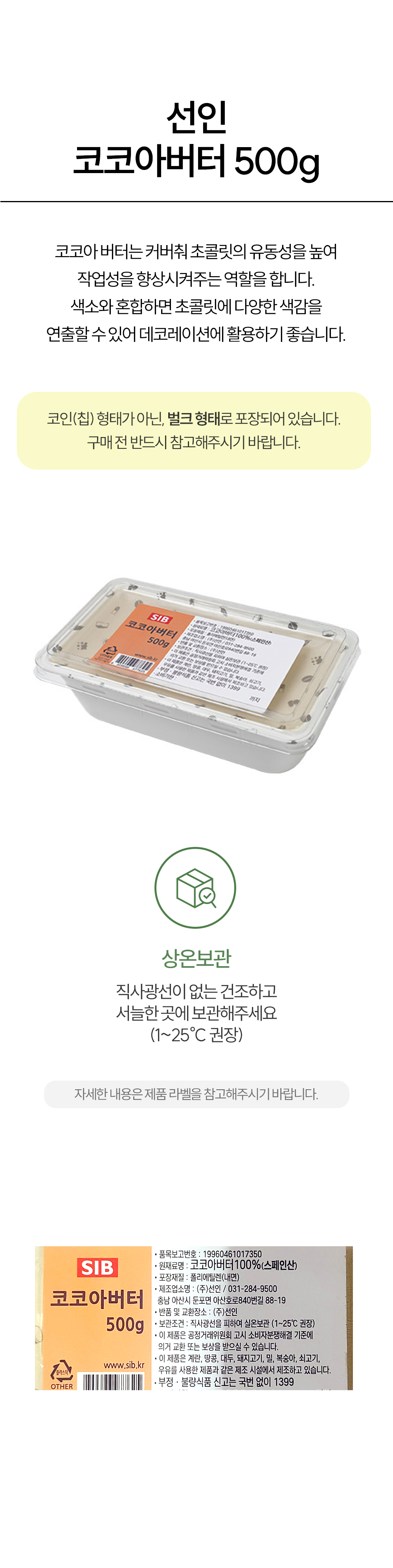 | 원재료명 및 함량 | 코코아버터 100% |