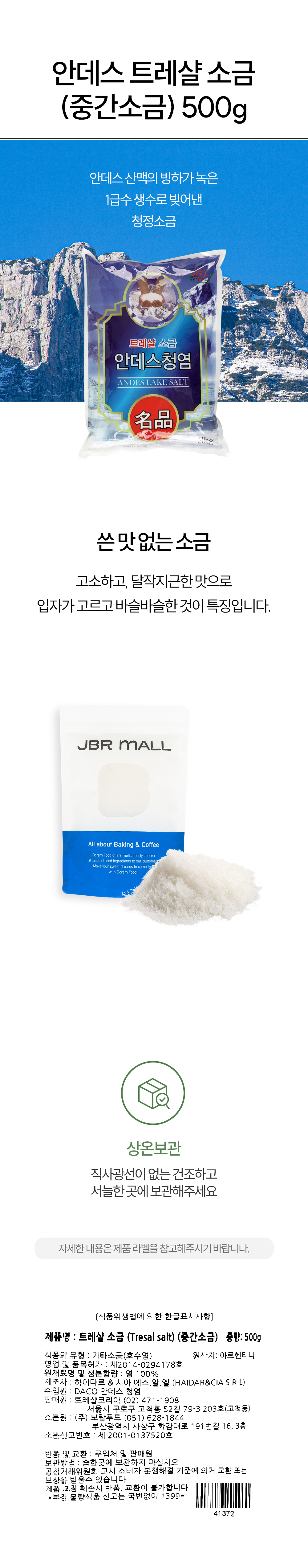 | 수입원 및 소재지 | DACO 안데스 청염 |