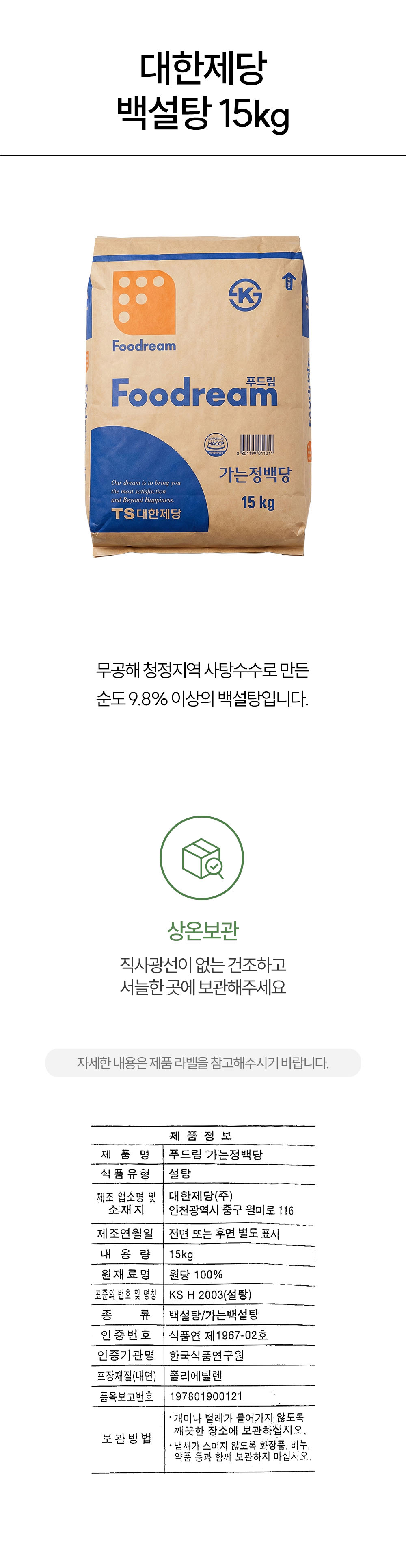 이미지 확대보기대한제당 하얀설탕 15kg 백설탕